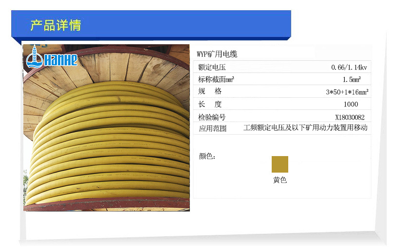 ● 工頻額定電壓U0/U為380/660V、660/1140V、1.9/3.3kv、3.6/6kv、6/10KV、8.7/10KV、300/500V。